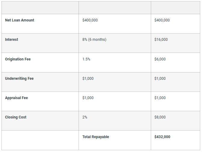 Bridge loans are provided by lenders such as banks and private investors alike and are calculated based on the borrower’s expected liquid assets, credit score, projected cash flow, and current real estate opportunities. That said, every lender is different, and some will have additional costs to be added to the calculation.Bridge Loan Calculator
